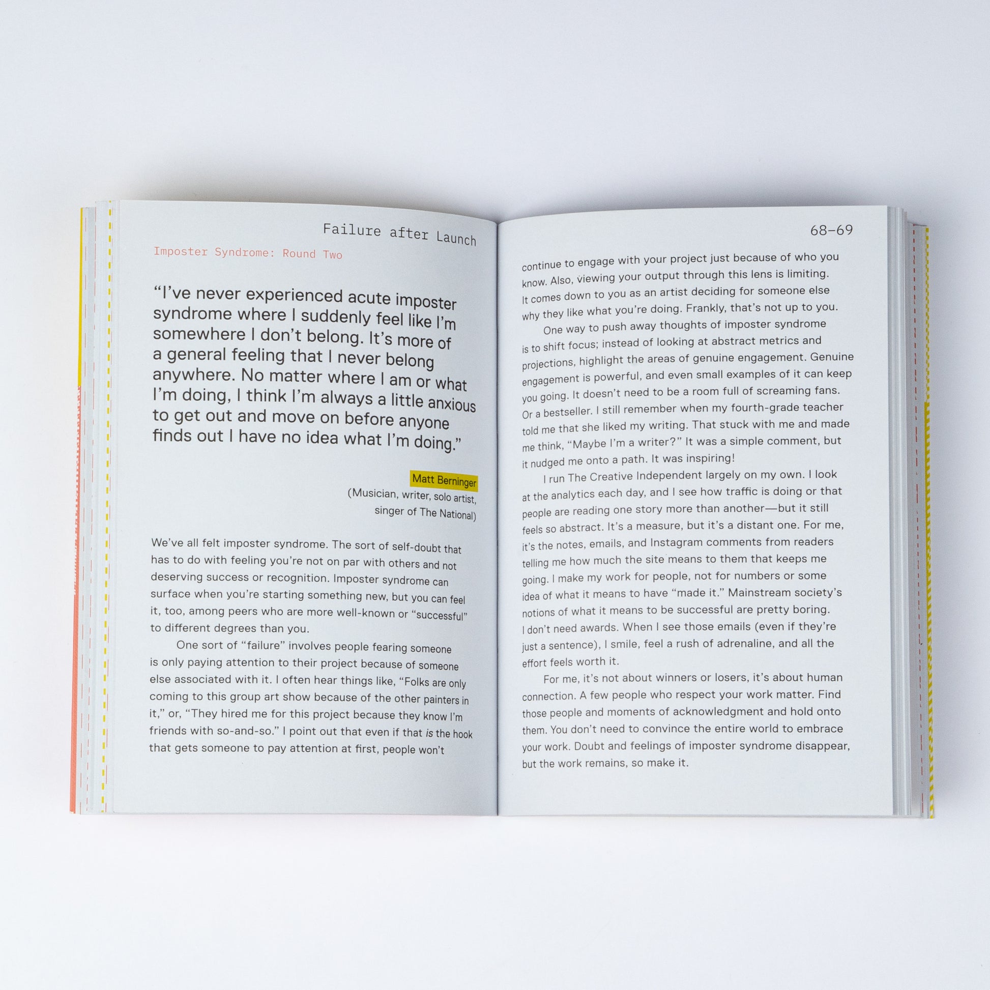 How to Fail Successfully tackles the inevitable challenges that come with making work and releasing it into the world. Whether you are confronting "failure" in the form of fear, imposter syndrome, or negative feedback, this book provides insights and exercises to help you reframe these vulnerabilities as vital components to your process. Working artists from all walks of life-such as musicians, authors, filmmakers, dancers, designers, and visual artists-offer their advice throughout the book, providing ample evidence that even the most accomplished among us deal with ongoing self-doubt.