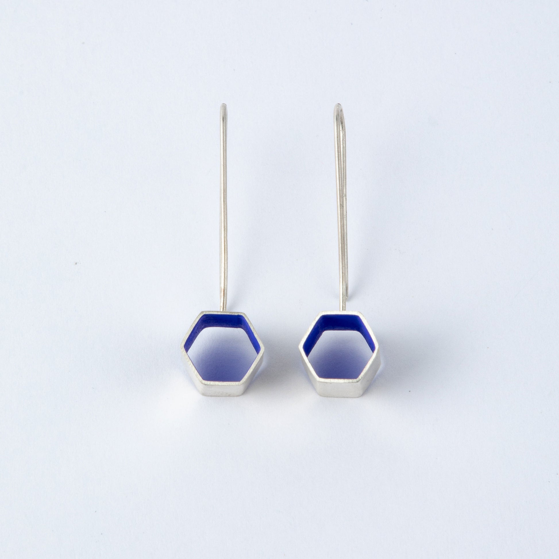 This eye-catching piece of jewellery is hand-fabricated in sterling silver and painted with a unique ultra-saturated blue pigment paint.