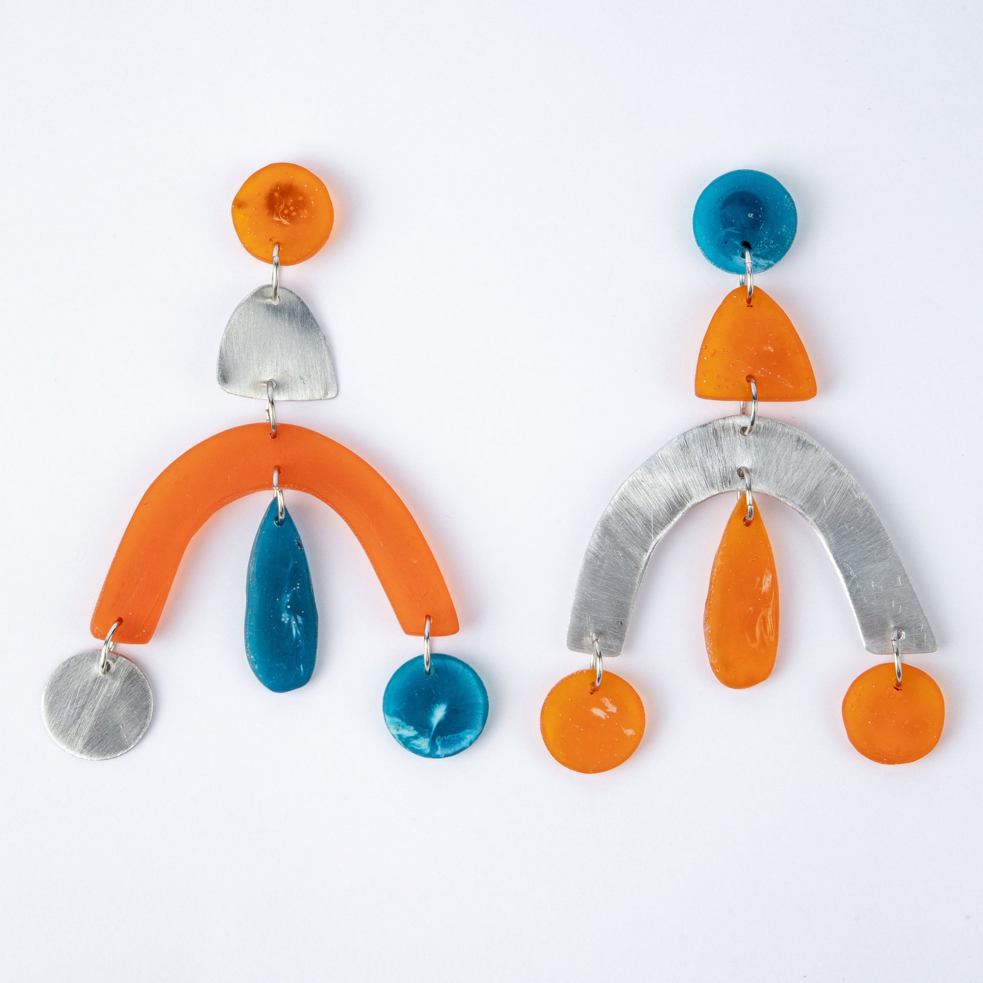 Eco-resin and aluminium, sterling silver hooks | 10 x 7.5 cm (L x W)