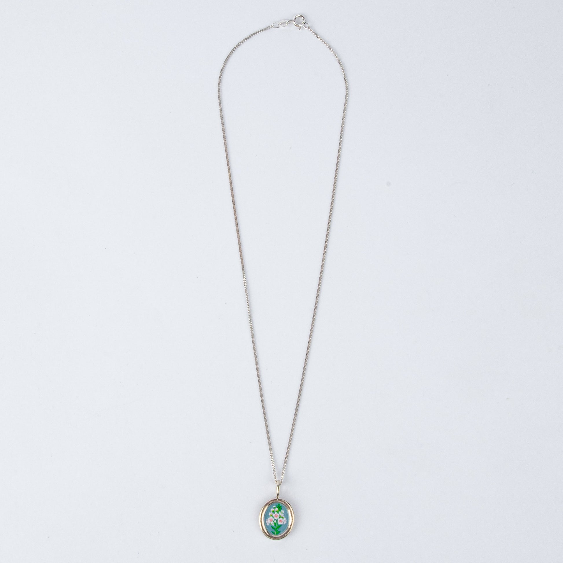 Hand painted enamel, sterling silver | necklace: 45 cm, pendant: 2.5 x 1.5 x 0.2 cm (L x W x D)