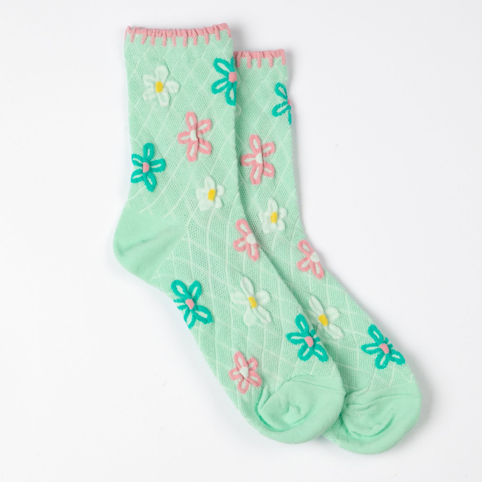 These socks have a gorgeous quilted-look, finished with a stretchy, blanket stitch edge.